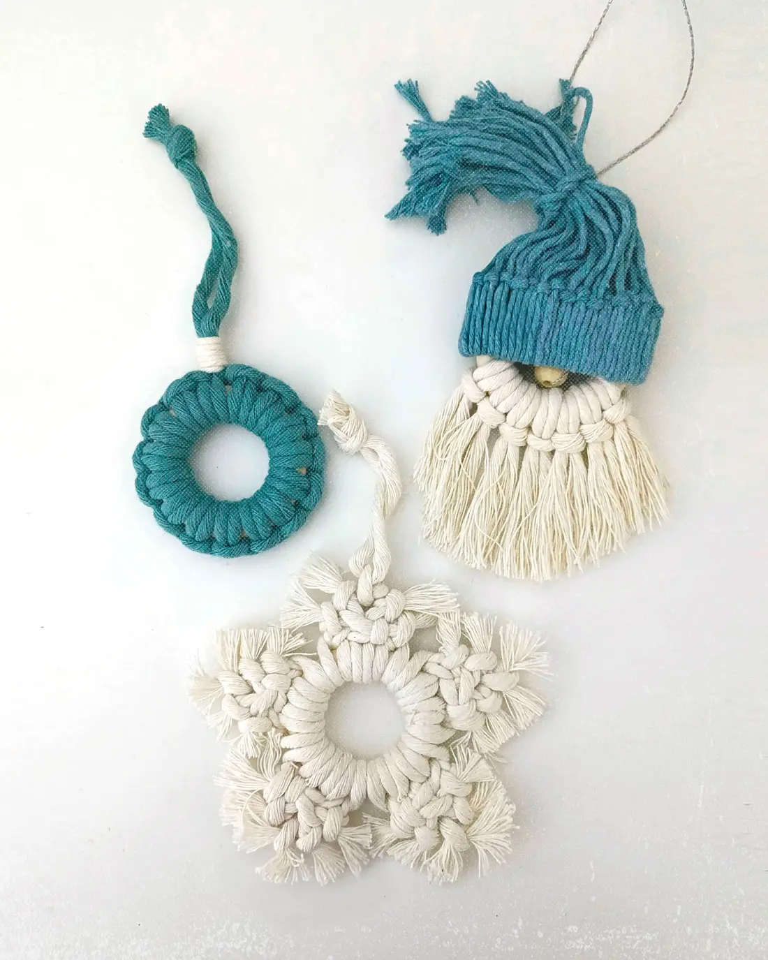 Set 3 Adornos de Navidad en Macramé Hechos a Mano